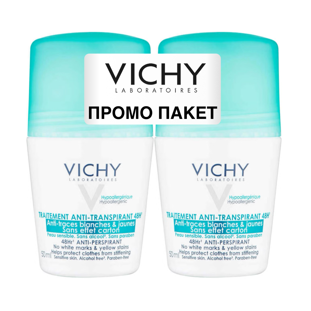 / VICHY DEO РОЛ ОН ЗА РЕГУЛИРАЊЕ НА ПРЕКУМЕРНО ПОТЕЊЕ БЕЗ БЕЛИ ТРАГИ И ЖОЛТИ ФЛЕКИ 1+1